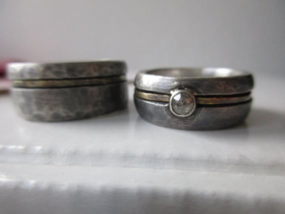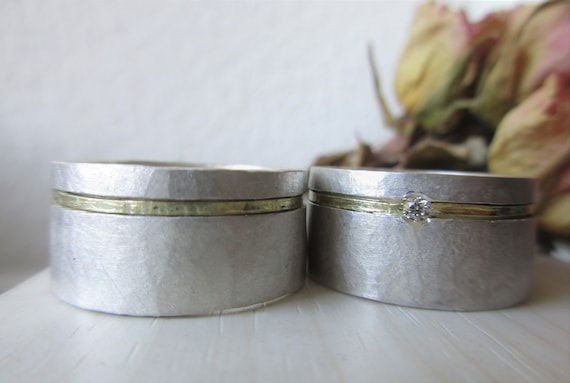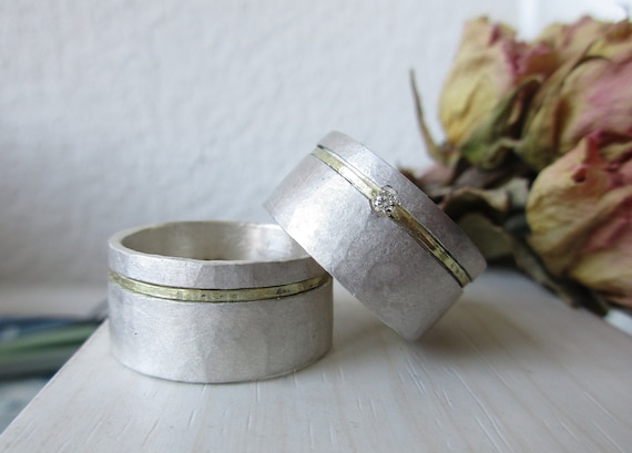 Geschmiedete Sehr Wilde Trauringe Oder Freundschaftsringe Aus Silber Mit Einem Streifen Aus 585 Gold In Der Vertiefung Unverwustl Trauringe Eheringe Paar Ring