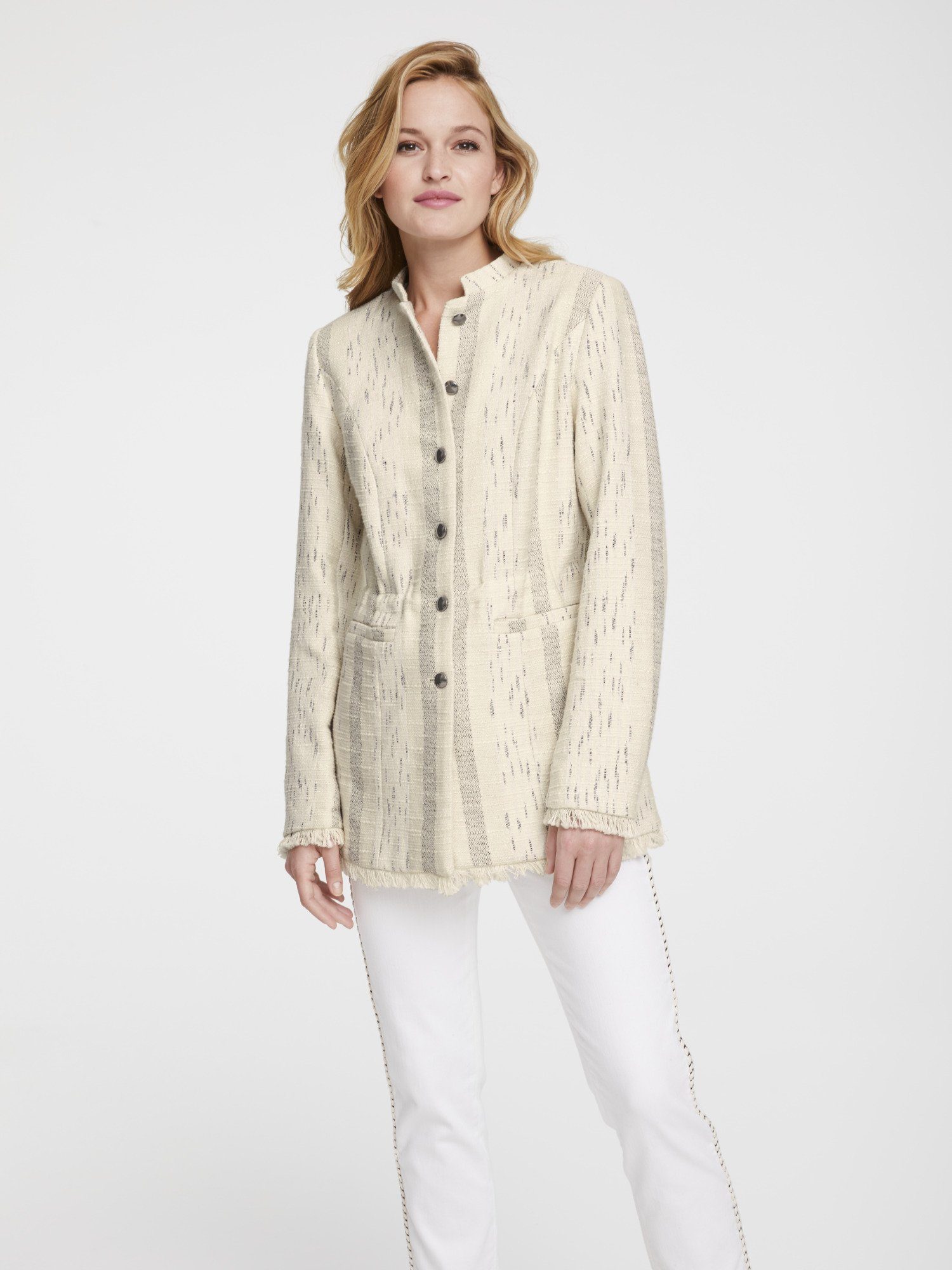 Bruno Banani Boucle Jacke Coole Damen Tweed Jacke Mit Gefransten Nahten Schwarz Grau
