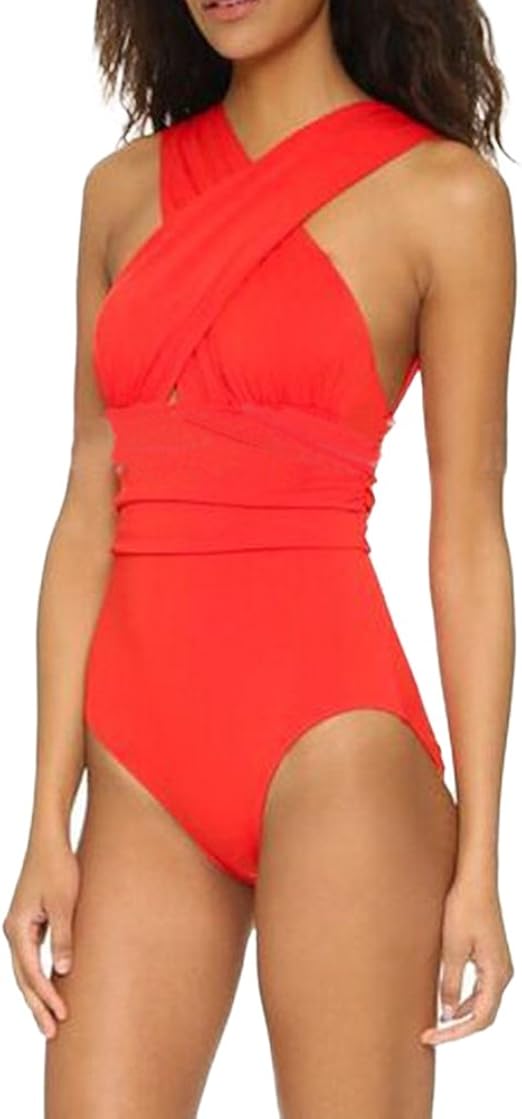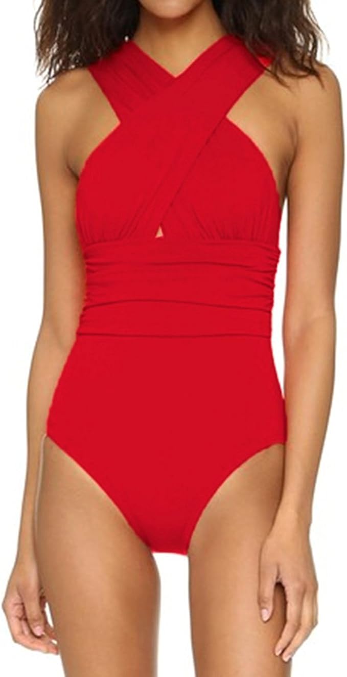 Damen Bandeau Einteilige Badeanzug Mit X Form Ausschnitt Bauchweg Monokini Pinup Strand Bikini Set Schwimmanzug Bademode Rot M Amazon De Bekleidung
