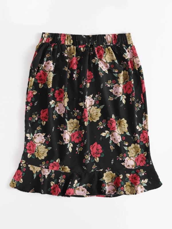 Schwarz Ruschensaum Geblumt Bohmisch Rocke Grosse Grossen Aktuelle Trends Gunstig Kaufen Shein Deutschland
