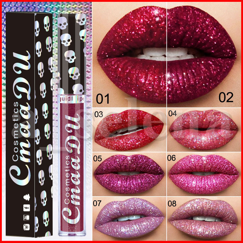 Allbesta 8 Farben Diamond Glitter Shimmer Lip Gloss Skull Liquid Lippenstift Metallic Matte Glossy Langlebig Make Up Amazon De Beauty