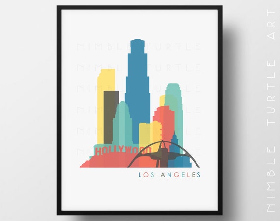 Los Angeles Skyline Printable Download Last Minute Gift Etsy