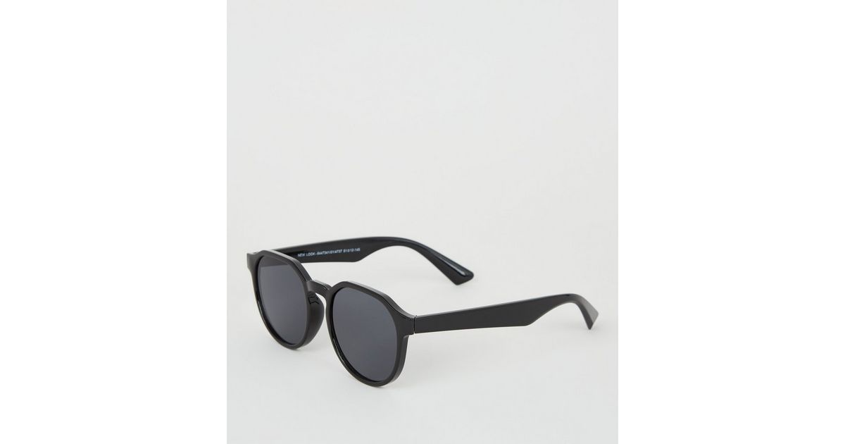 Schmale Runde Sonnenbrille In Schwarz New Look