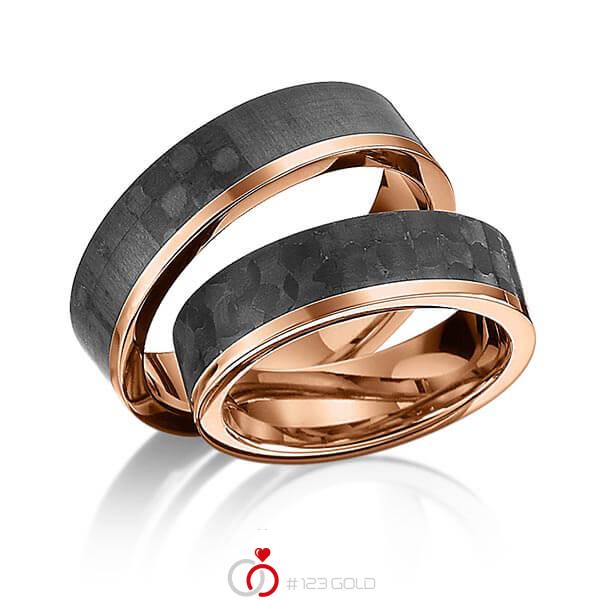Paar Carbon Trauringe Eheringe In Rotgold 585 Carbon Einzug Von 123gold