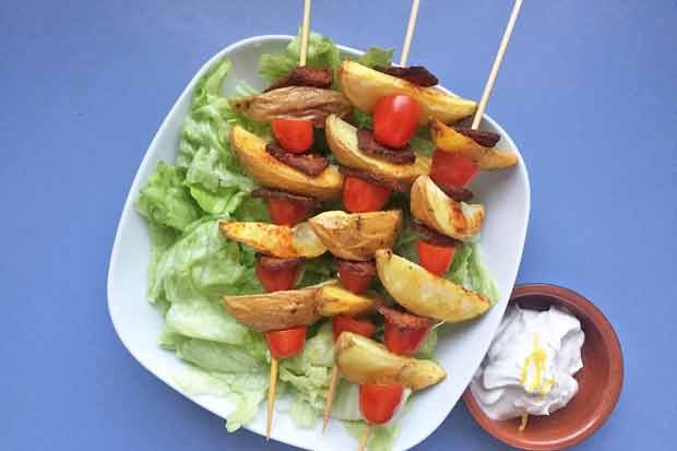 Vegetarische Erdapfel Gyros Spiesse Auf Blattsalat Rezept Gutekueche At