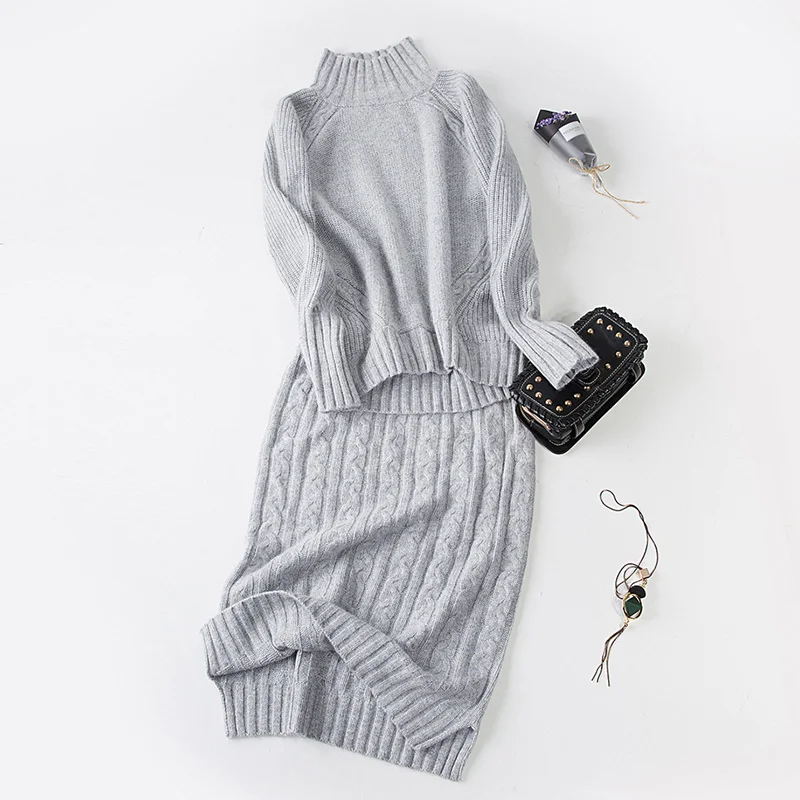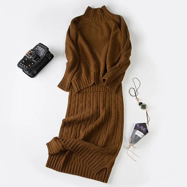 Goat Cashmere Dress Autumn Winter European Style Women Pure Goat Cashmere Floral Knitted Two Pieces Sweater And Skirt Sets Sweater And Skirt Set Skirt Setsweater And Skirt Aliexpress