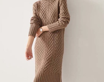 Pure Wool Knitted Dress Women S Clothing Elegant Solid Long Sleeve Autumn Dresses Female Natural Wool Sweater Dress Winter Dresses Aliexpress