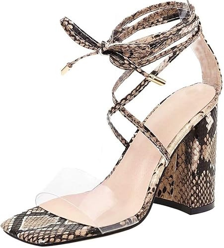 Jyang Damen Transparent Sandalen Schnuren Blockabsatz High Heels Sandaletten Schlangenmuster Sommersandalen Fur Frauen Amazon De Schuhe Handtaschen