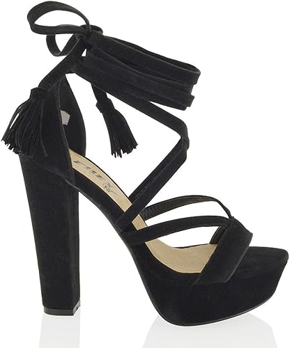 Essex Glam Damen Schwarz Wildlederimitat Hohen Blockabsatz Plateau Sandalen Schnuren Reimchen Schuhe Eu 40 Amazon De Schuhe Handtaschen