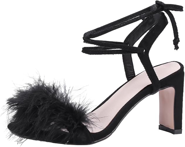 Aiyoumei Damen Blockabsatz Sandalen Mit Schnurung Und Fell Sandaletten High Heels Sommer Schnuren Schuhe Amazon De Schuhe Handtaschen