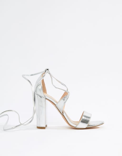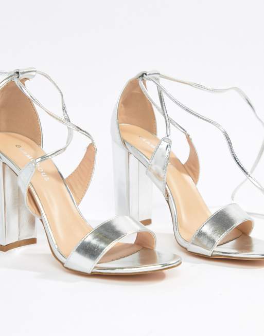 Glamorous Silberne Sandalen Mit Blockabsatz Und Schnurung Am Knochel Asos