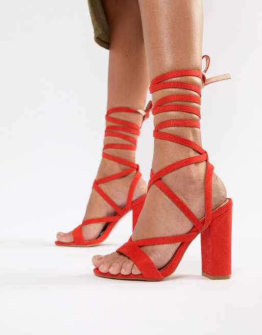Public Desire Julia Rote Sandalen Mit Blockabsatz Und Schnurung Asos