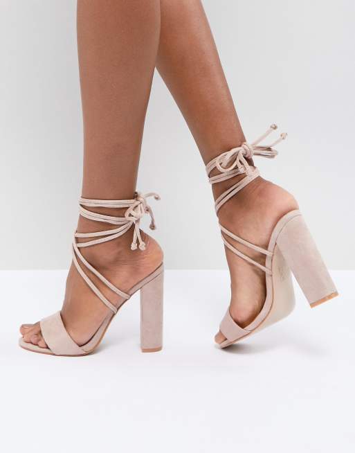Asos Glamorous Absatz Sandalen Damen Blockabsatz Gr 39 Uk 6 Nude High Hells Ebay
