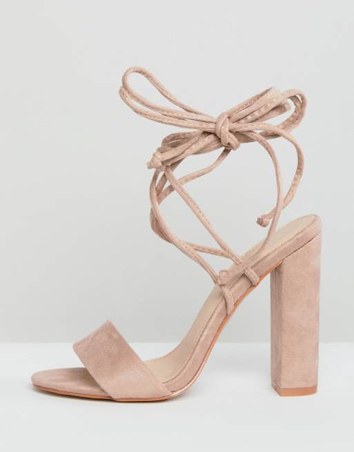 Public Desire Wide Fit Frankie Sandalen Mit Blockabsatz Und Schnurdetail In Zartrosa Evesham Nj
