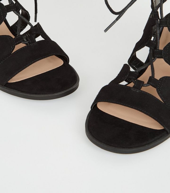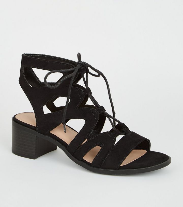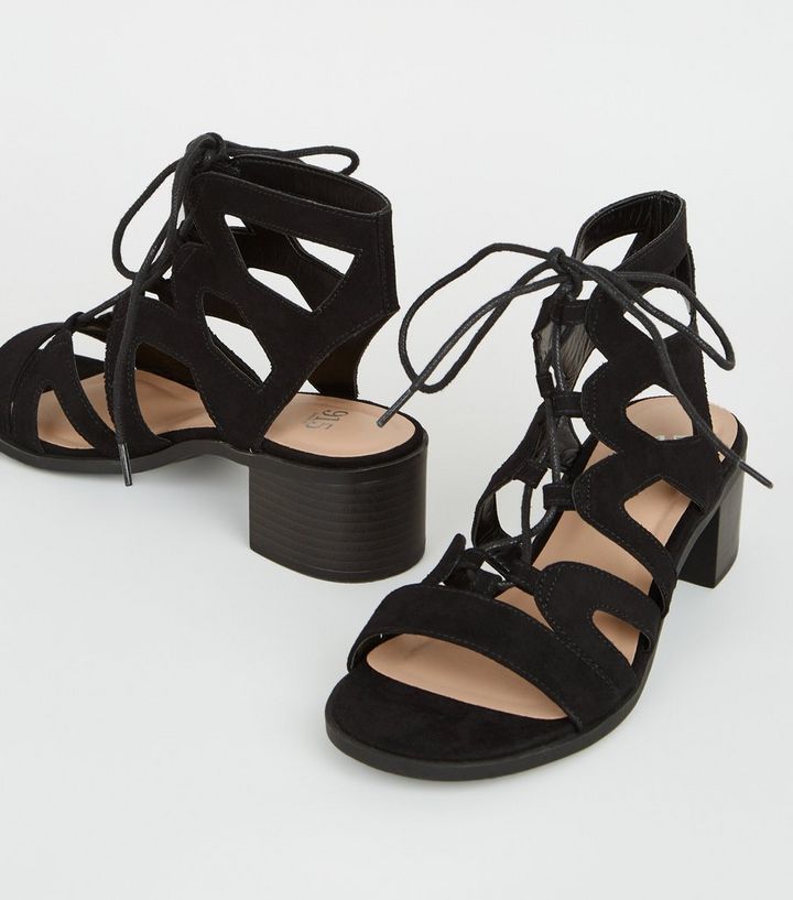 Schwarze Bequeme Sandalen Mit Blockabsatz Und Ghillie Schnurung New Look