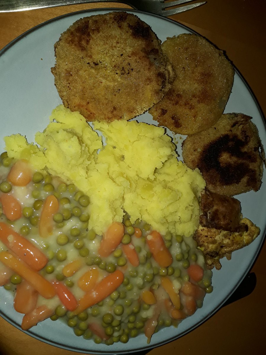 Frankentim Kohlrabischnitzel Mit Kartoffelpuree Und Erbsen Karotten Gemuse In Mehlschwitze Frauchenkocht Dasperfektedinner T Co My3nw0owh8