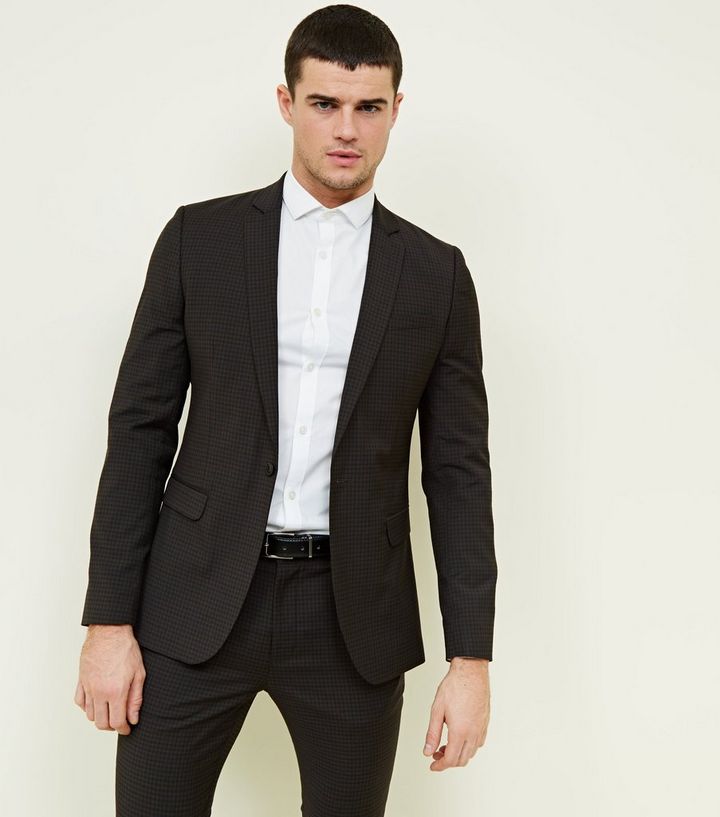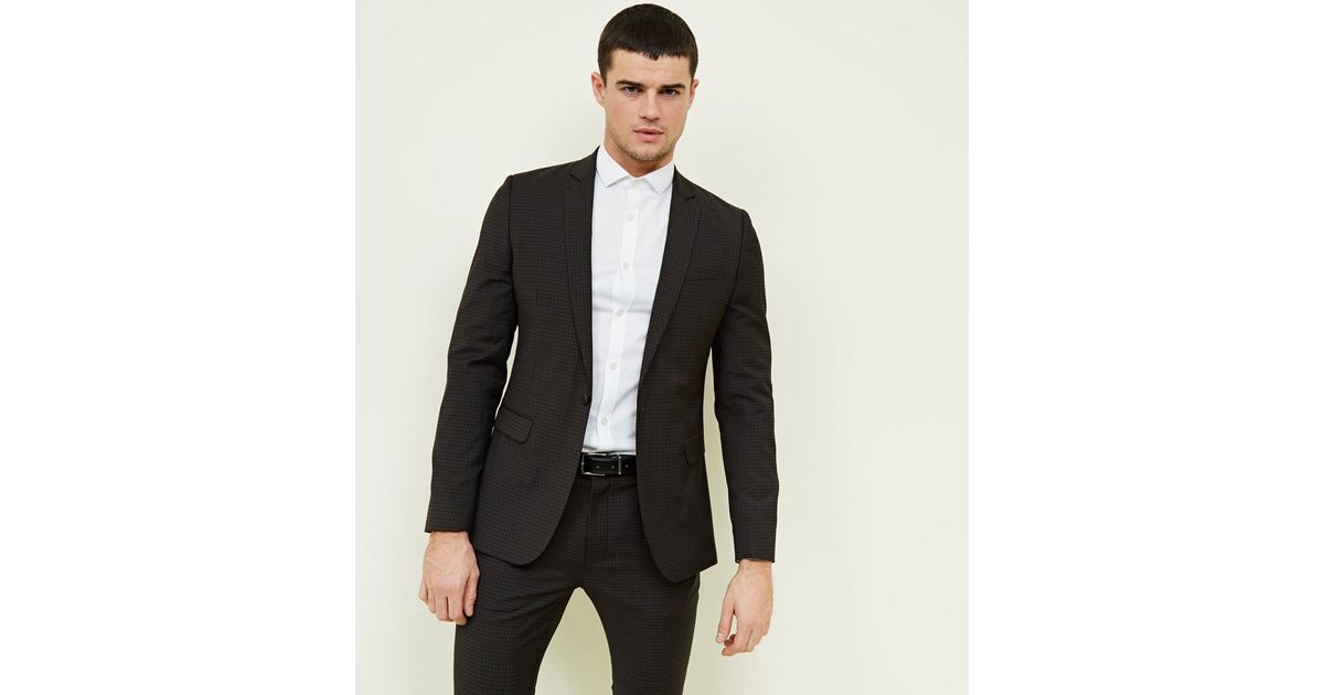 Brauner Schmal Geschnittener Blazer Mit Karo Print New Look