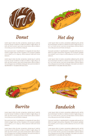 Donut And Sandwich Burrito And Hot Dog Posters Lizenzfreie Vektorgrafiken