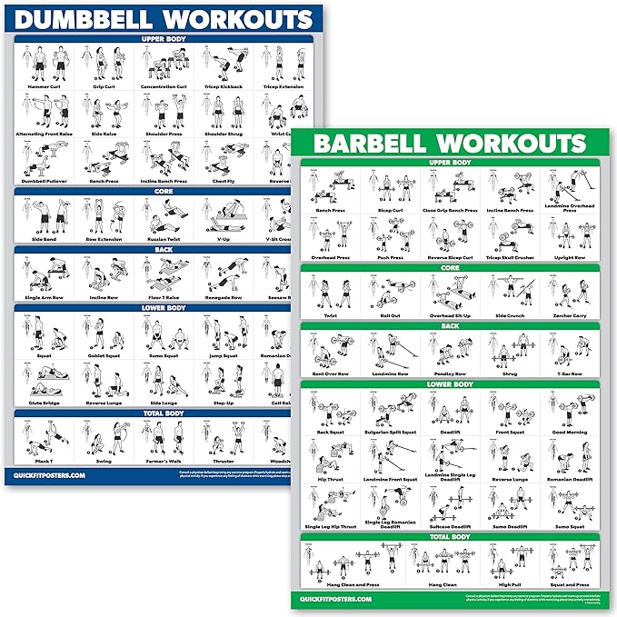 Quickfit Hanteltraining Und Langhantel Ubungsposter Set In Englischer Sprache Laminiertes 2 Teiliges Diagramm Set Laminiert 18 X 27 Amazon De Bekleidung