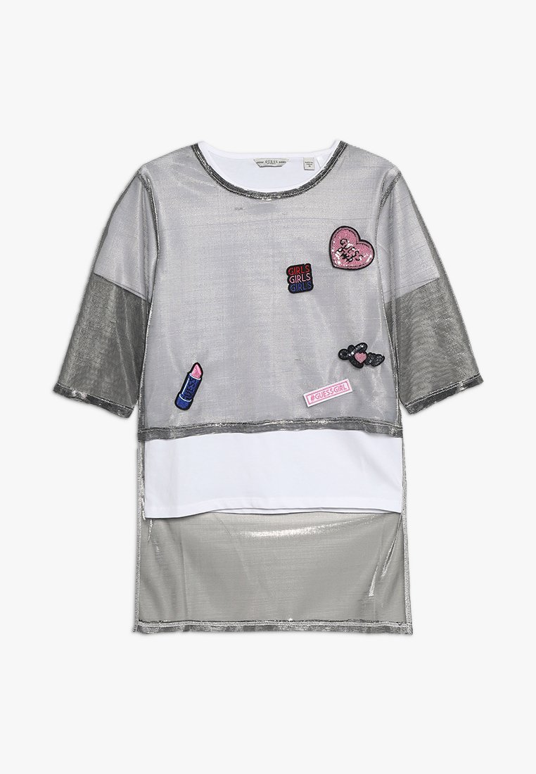 Guess Junior Print T Shirt True White Silver Zalando Co Uk