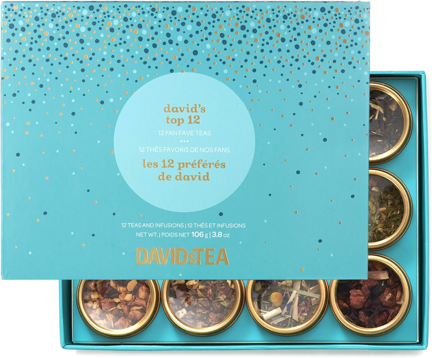 Davidstea David S Top 12 Tea Sampler Loose Leaf Tea Gift Set Assortment Of 12 Fan Favourite Teas 106 G 3 8 Oz Amazon Ca Grocery