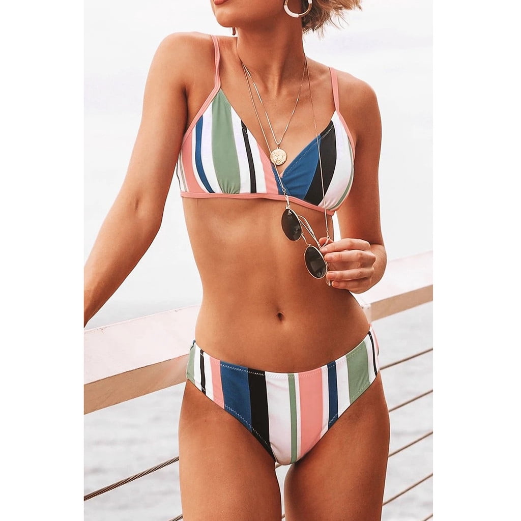 Wirdiell Womens Summer Striped Push Up High Cut Bikini Set Two Piece Swimsuit Walmart Com Walmart Com