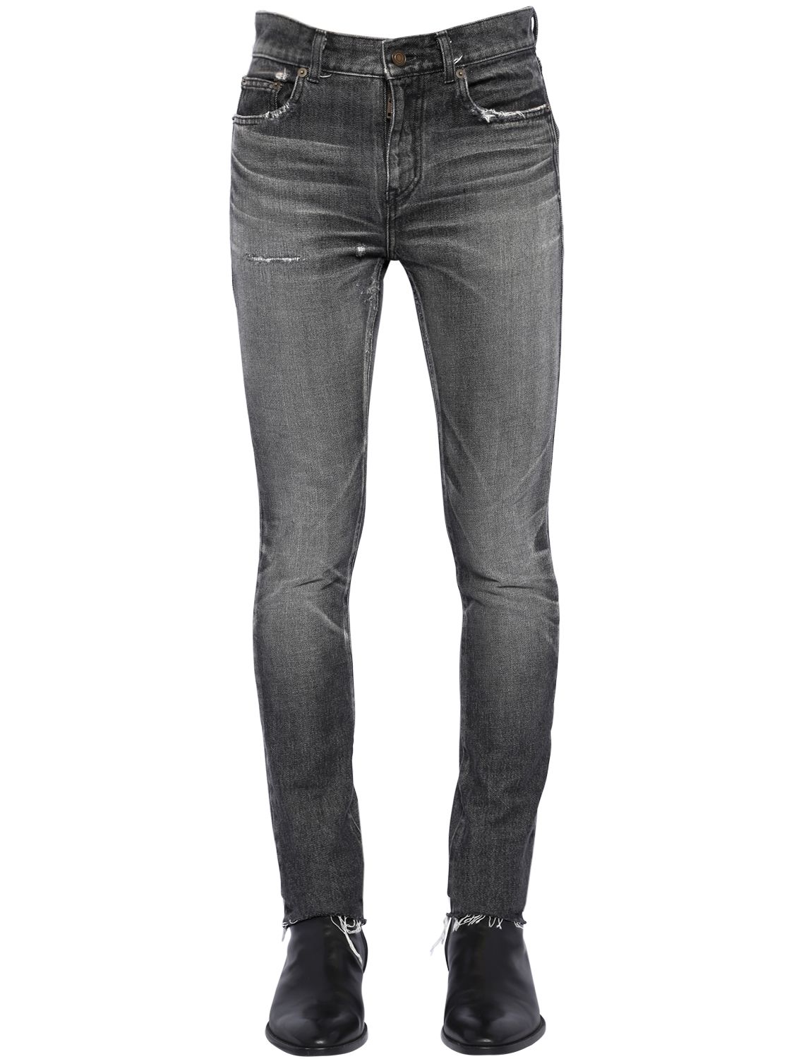 Saint Laurent 15cm Low Rise Skinny Denim Jeans In Black Modesens