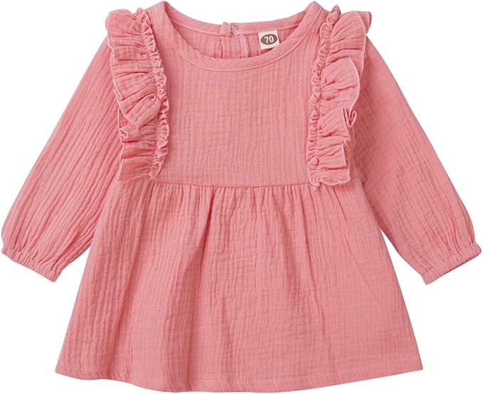 Zhushugg Baby Madchen Kleider Herbst Winter Massiv Leinen Knopf Ruschen Prinzessin Party Kleid Kleidung Mit Ausgestellte Armel Fur Kleinkind Kinder 12m 5 Jahre Madchen 0 24 Monate Baby
