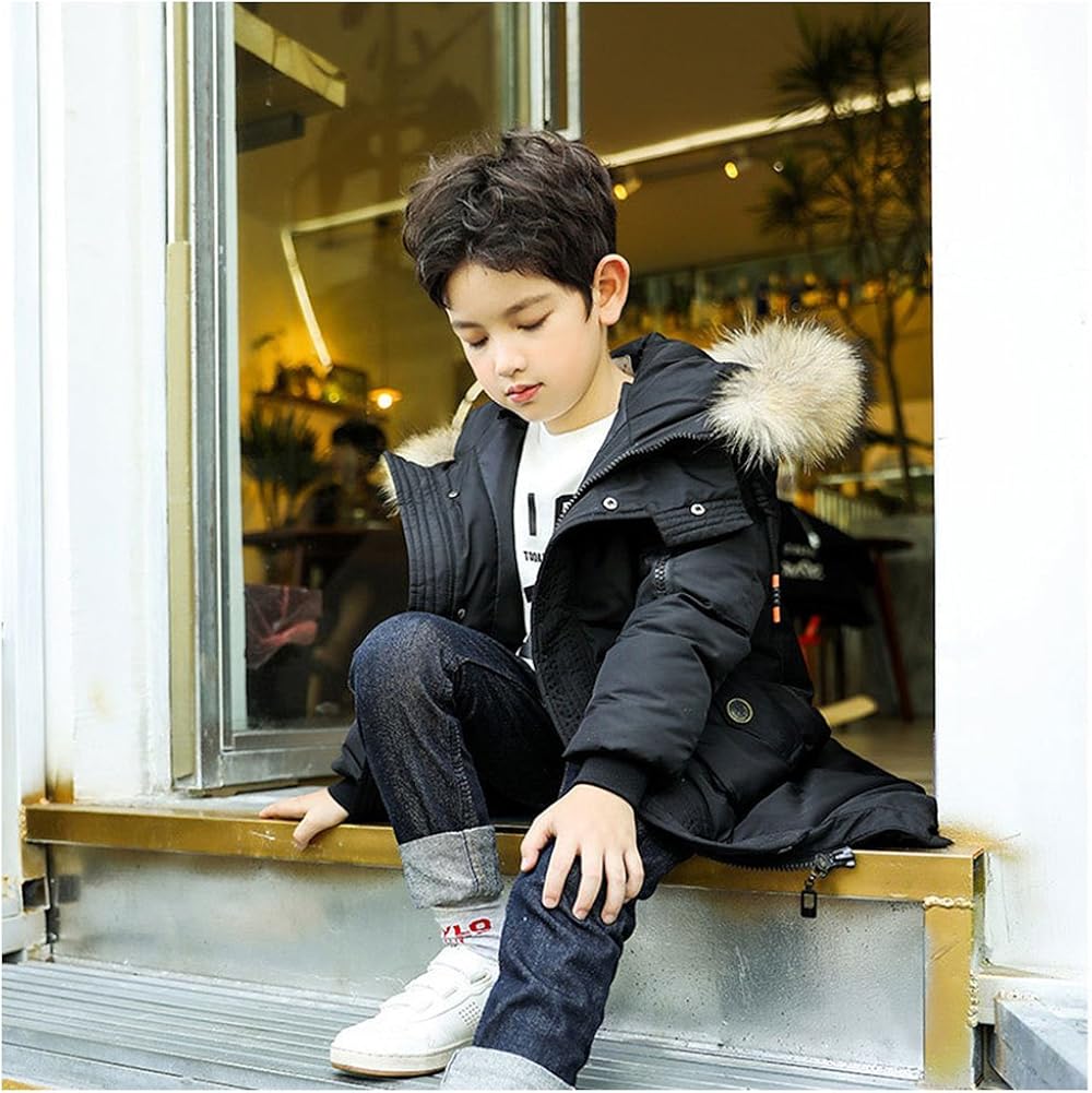 Kinder Jungen Daunenjacke Mit Kapuzen Pelzkragen Winterjacke Lange Daunenmantel Warm Winddicht Steppjacke Parka Trenchcoat Outerwear