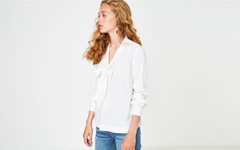 MIT SCHLUPPE Bluse winter white Eine für alle – die weiße Bluse ist das absolute Basic im Kleiderschrank einer jeden Frau Als Gegenstück zum Herrenhemd ist sie für uns Frauen bei Vorstellungsgesprächen und BusinessMeetings stets die erste Wahl Darüber hinaus ist sie zu sämtlichen Looks schlicht und schick kombinierbar. Marcel Ostertag Bluse mit Schluppe € Marcel Ostertag Cargohose mit Bindeband € LCredi Transparenter Shopper mit Print €6399 Flambiance LEDHerzkerze mit 3DRosen, 2er Set €2699 Judith Williams Royal Collagen Körpercreme €2999. Bluse mit Schluppe zum Binden 49,99 € 39,99 € seidensticker Schluppenbluse »Schwarze Rose«.
