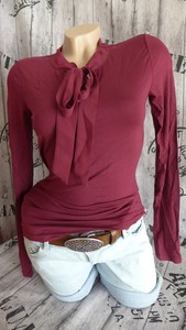 Shirt Mit Schluppe Schleife Dunkelrot 32 Langarm Damen T Shirt Bluse Ebay