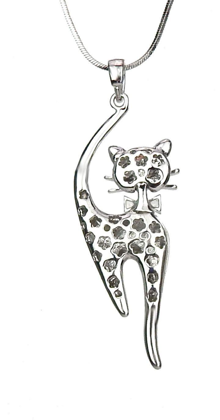 Ella Jonte Kette Katze Silber Lange Halskette Mit Grossem Anhanger Cat Pendant