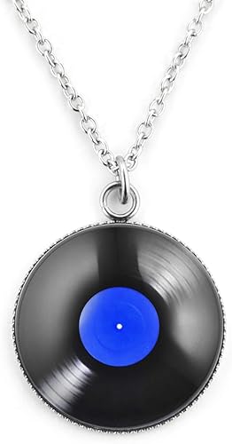 Schmuckzucker Damen Kette Lang Mit Grossem Anhanger Motiv Vinyl Schallplatte Edelstahl Silber Farben Schwarz Blau Grosser Anhanger 25cm Lange Kette 70cm Amazon De Schmuck