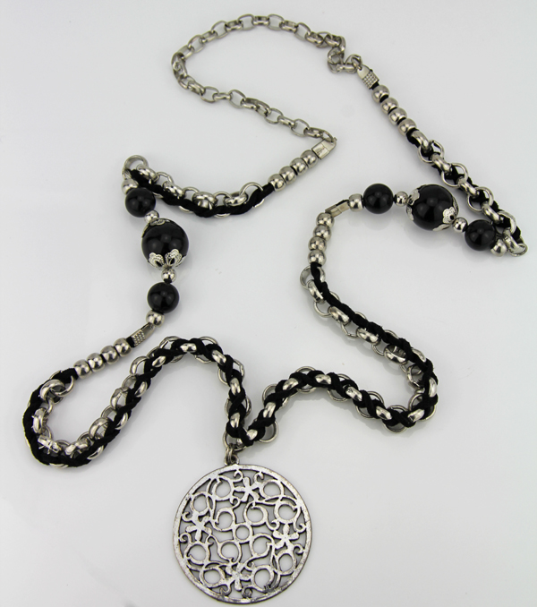 Lange Kette Mit Grossem Anhanger Schwarz Weiss Sck14