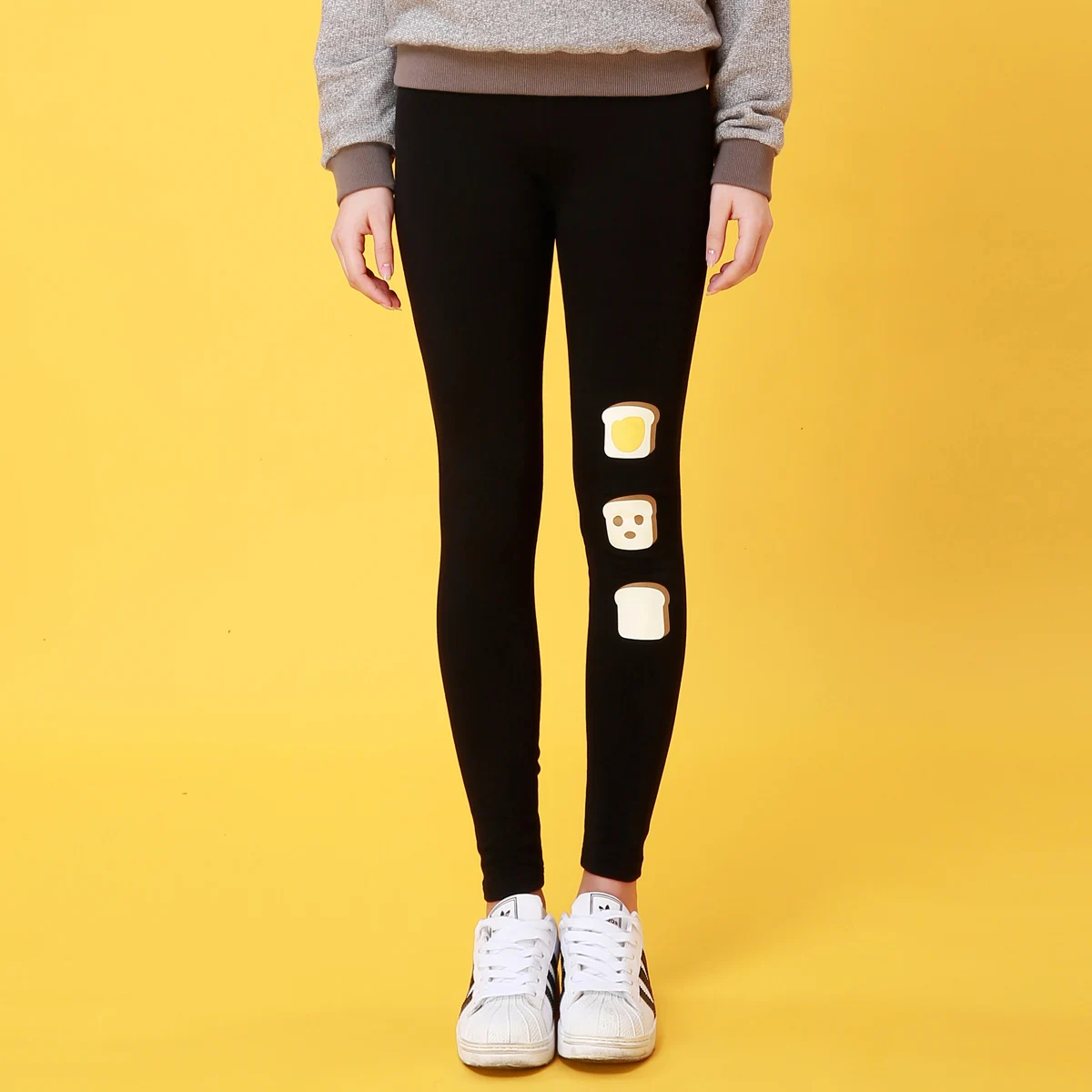 Neue Frauen Schwarz Leggings Toast Print Leggings Nette Spass Muster Hosen Beilaufige Schwarze Hosen Dunne Hosen Leggings Aliexpress