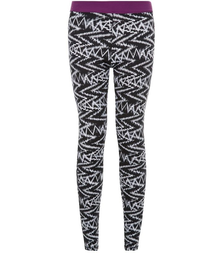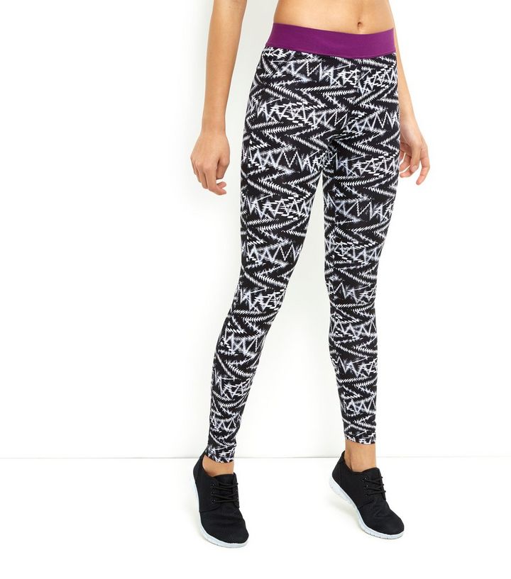 Schwarze Sport Leggings Mit Zickzack Muster New Look