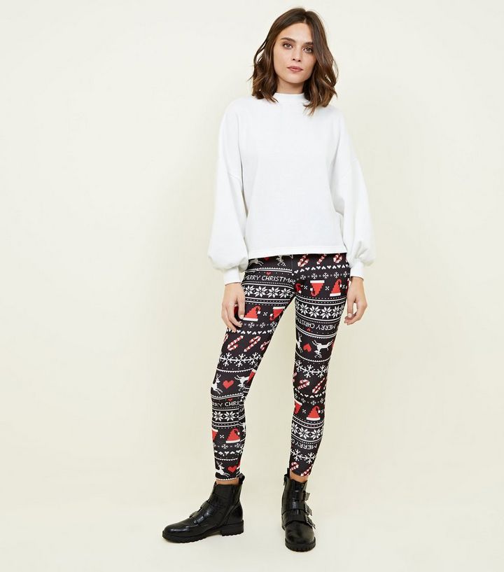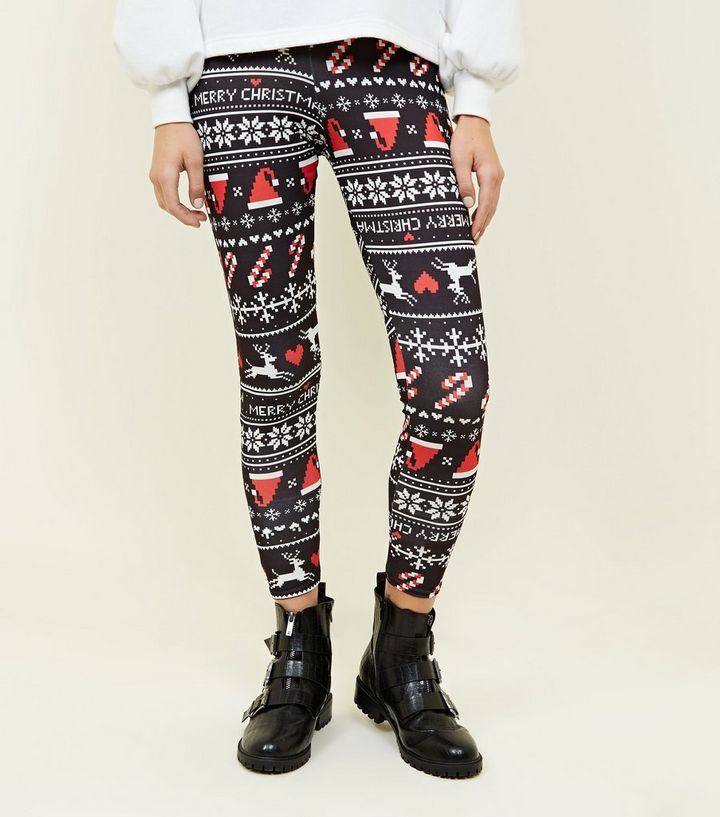 Schwarze Leggings Mit Weihnachtlichem Muster New Look