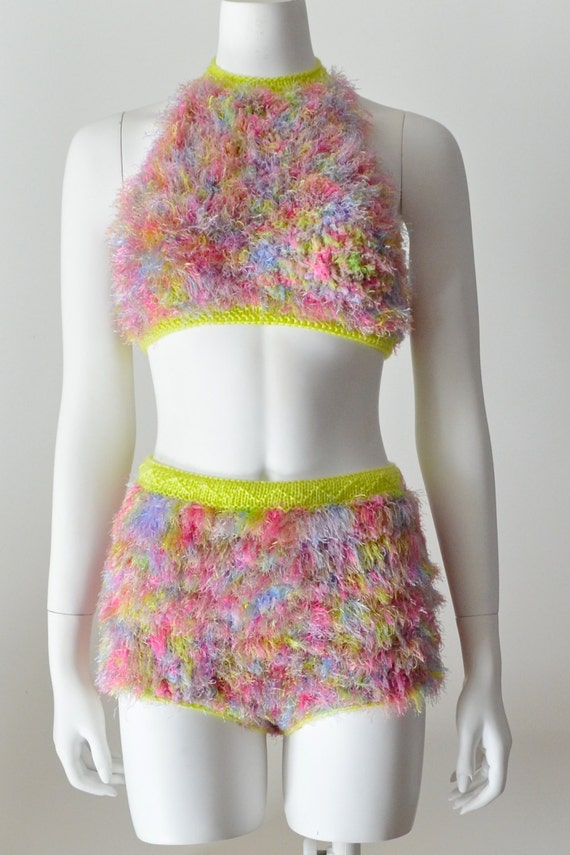 Festival Bikini Set Festival Fuzzy Halter Top And Shorts Etsy