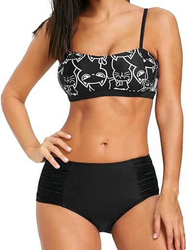 Amazon Com Amiley Women Girls Cute Kitty Cat Bikini Shorts Trunks 2 Pieces Set Padded Bathing Swimsuit Swimwear Clothing