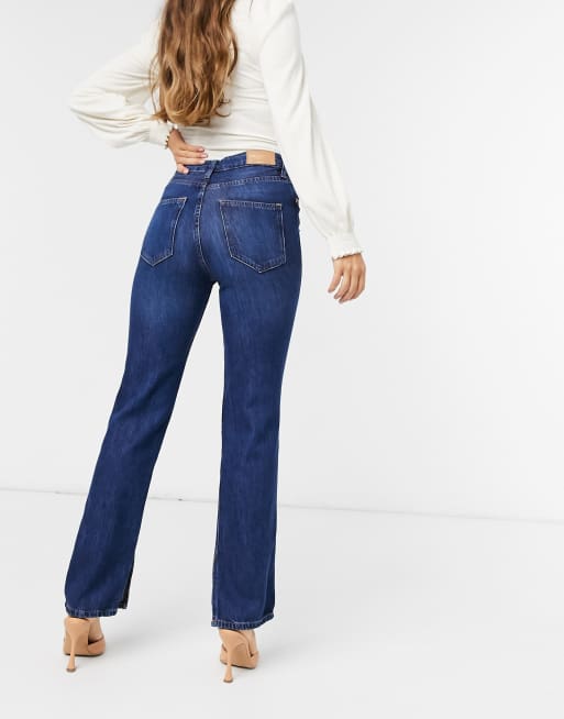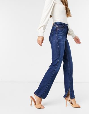 Stradivarius Gerade Geschnittene Jeans Mit Geschlitztem Saum In Blau Asos