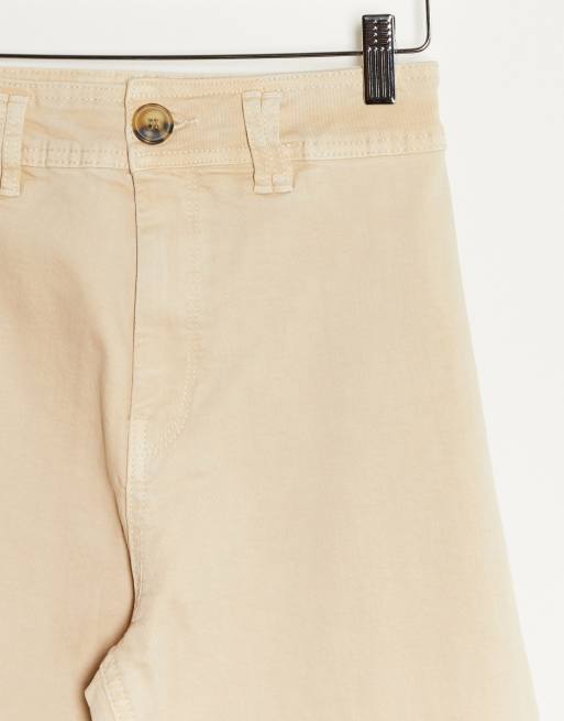 Stradivarius Kurze Gerade Geschnittene Jeans Mit Weitem Bein In Beige Asos