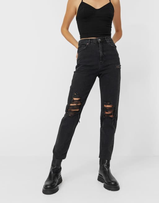 Stradivarius Schwarze Mom Jeans Mit Zierrissen Im Vintage Stil Evesham Nj