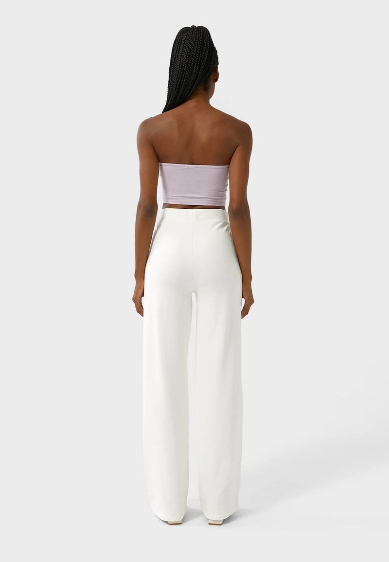 Stradivarius Gerade Geschnittene Stoffhose White Weiss Zalando De