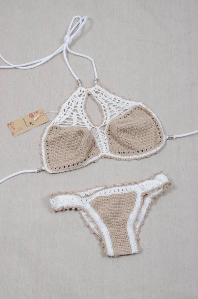Amazoncom Fringe Bikini Halter Crop Top Handmade Crochet Swimsuit Summer Beachwear (Beige) Clothing. Shop 77 top white crochet bikini and earn Cash Back all in one place Also set Sale Alerts and shop Exclusive Offers only on ShopStyle. Find many great new & used options and get the best deals for Triangle Beige Medium Bikini Woman Hollow Out Swimsuit Crochet Female Swimwear at the best online prices at eBay!.