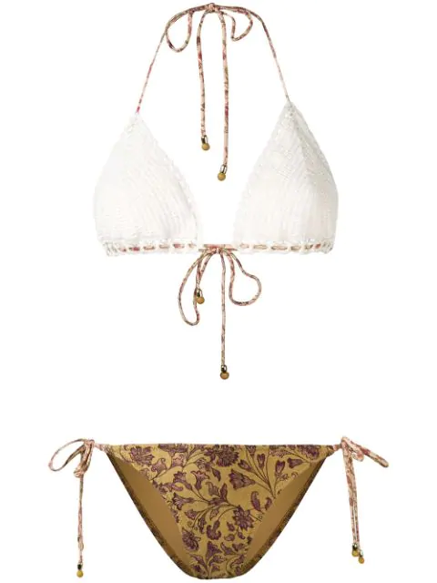 Zimmermann Freja Paisley Print And Crochet Bikini Beige The Urge Au