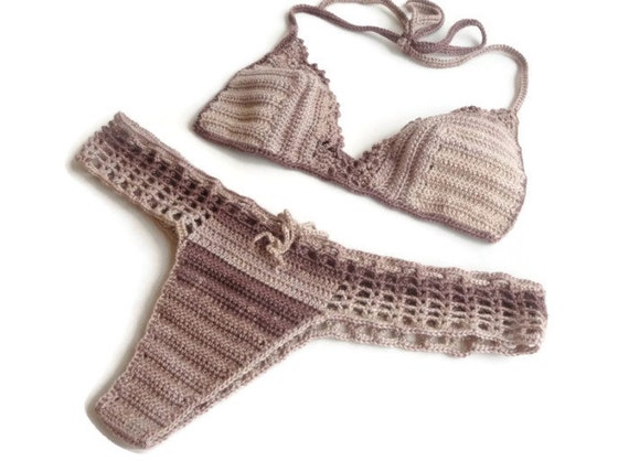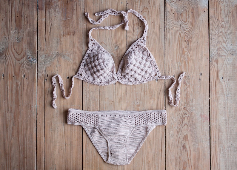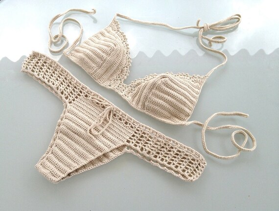 Crochet White Bikini Work it in different colors such as black, hot pink, cream, brown, tan, beige, etc Crocheted Bikini 18 Crochet a Girl’s Bikini Crop Top This pattern suits experienced crocheters and could be your goto beachwear this summer You would need to translate the web page as the instructions are given in a foreign language. Great choice, finest quality and newest trends ?. Crochet bikini Beige swimsuit Valentine day gift for her Etsy This crochet bathing suit is made of high quality microfiber yarn It includes of two piece fishnet beaded crop top and high waist side tie tasseles bikini bottom I knit a swimsuit according to individual measurements.