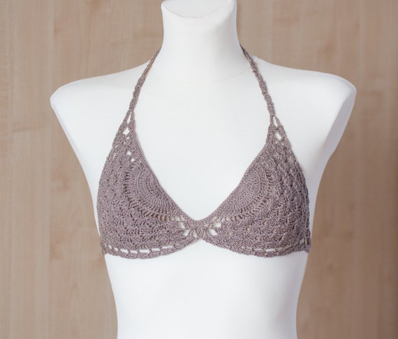 Crochet Bikini Top Beige Crocheted Top Knitted Swimsuit Top Etsy