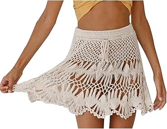 Amazon Com Cxins Women S Sexy Boho Hollow Out Handmade Crochet Mesh Bikini Beach Short Skirt High Waist Swimwear Bottom Swimsuit Cover Up Beige Onesize Clothing