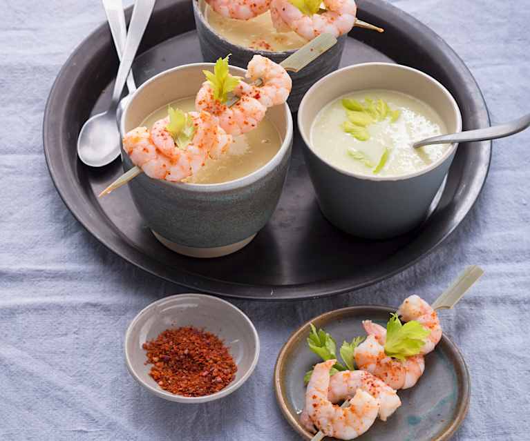 Sellerie Weisswein Suppe Mit Garnelenspiessen Cookidoo Das Offizielle Thermomix Rezept Portal