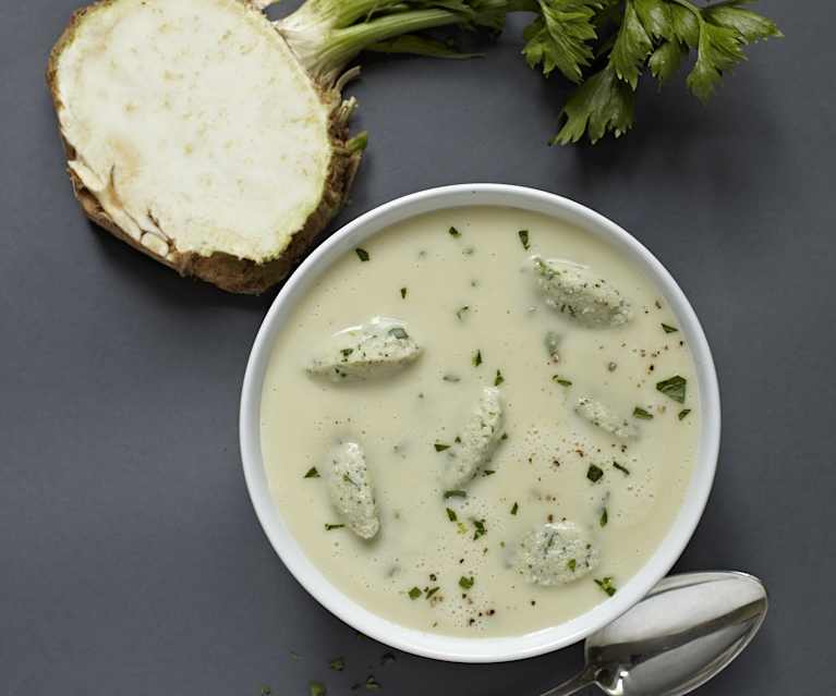Sellerie Kartoffel Suppe Mit Krauterklosschen Cookidoo Das Offizielle Thermomix Rezept Portal